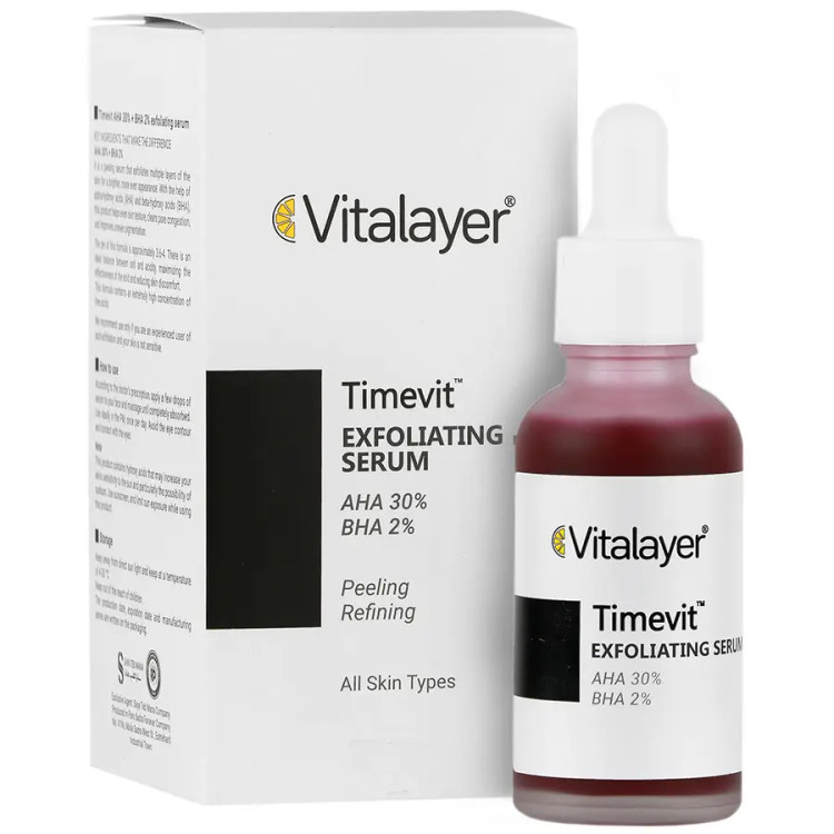 این سرم لایه بردار، لایه های مختلف پوست را توسط آلفاهیدروکسی اسید (AHA) و بتا هیدروکسی اسید (BHA) لایه برداری کرده و ظاهری روشن تر و یکنواخت تر به پوست می دهد. علاوه بر آن، منافذ پوست را نیز پاکسازی می کند.
