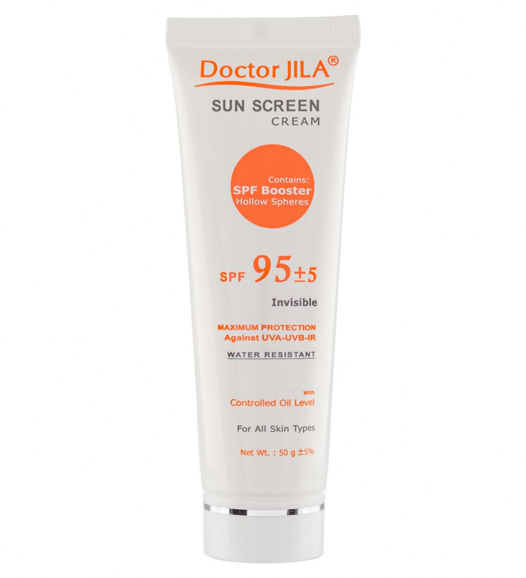 - کرم ضد آفتاب دکتر ژیلا ۹۵ SPF، محافظت کننده از پوست در برابر اشعههای UVA و UVB